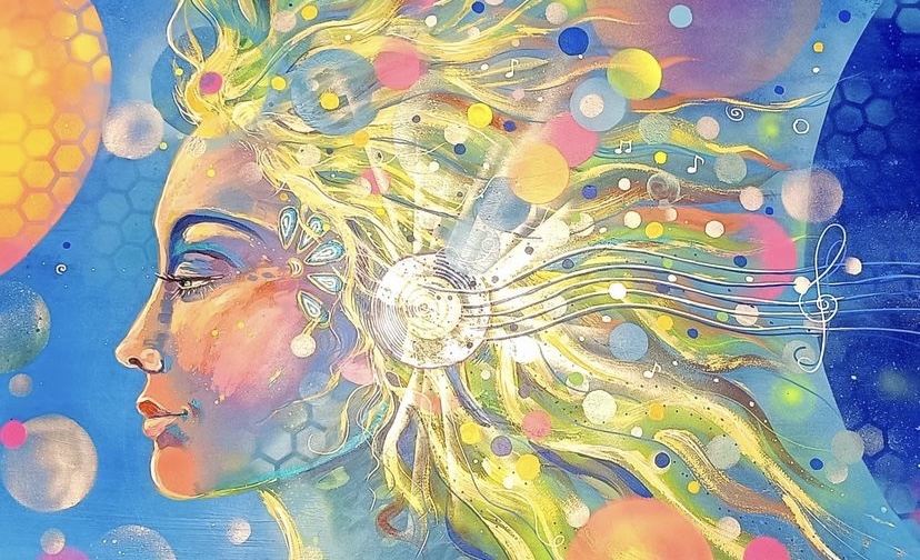 “The face in this painting is a representation of Pachamama, Mother Earth. I wanted to depict that we are co-creating with Her. That we are responsible in this process of receiving and giving our love.”